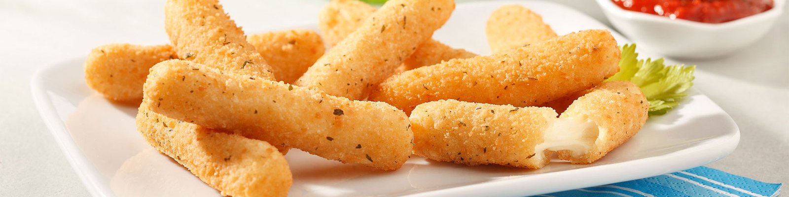 Breaded Mozzarella sticks, served with homemade tomato sauce.
