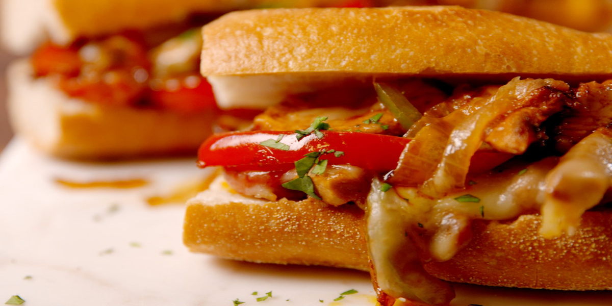 Grilled steak with cheese, , lettuce, tomato, grilled onions, mushrooms, and green peppers.